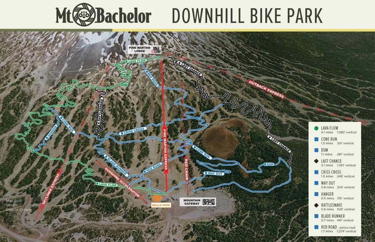The Mt. Bachelor Downhill Bike Park trail network, as envisioned at the approved build-out.
