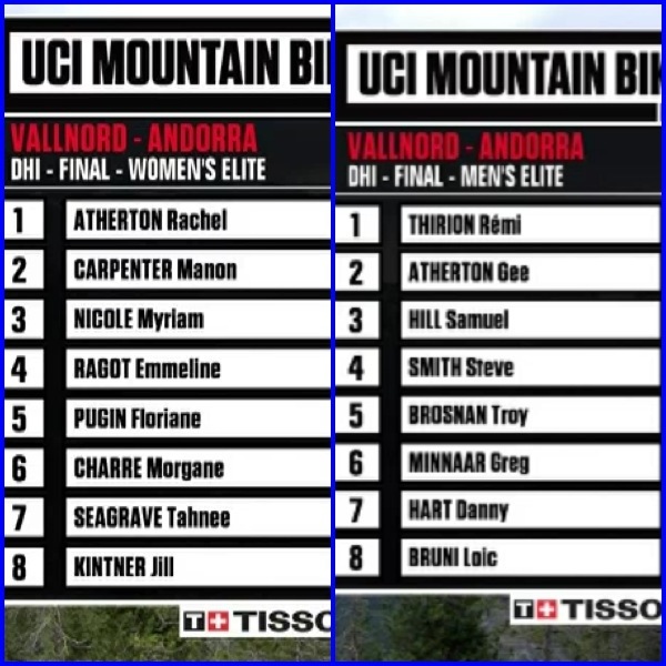 UCI Mountain Bike World Cup Vallnord, Andorra 2013 DHI results By White Lotus Sports on July 28, 2013 • ( 0 ) UCI Mountain Bike World Cup Vallnord, Andorra 2013 DHI results Full results here. Share this: Click to share on X (Opens in new window) X Click to share on Facebook (Opens in new window) Facebook Click to email a link to a friend (Opens in new window) Email More Click to print (Opens in new window) Print Like Loading...‹ 2013 Portland Short Track Series Race #82013 UCI BMX World Championships Elite Finals ›Categories: Mountain Bike Racing Related Articles 2026 Cascadia Dirt Cup Schedule 2026 Northwest Cup Downhill MTB Schedule North American Enduro Cup 2026 2026 Sturdy Dirty Enduro