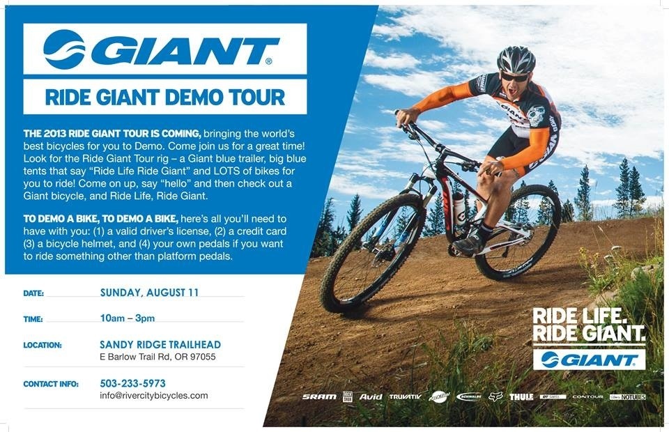 Giant Bicycles Demo at Sandy Ridge By White Lotus Sports on August 8, 2013 • ( 0 ) Giant Bicycles Demo at Sandy Ridge brought to you by River City Bicycles Share this: Share on X (Opens in new window) X Share on Facebook (Opens in new window) Facebook Email a link to a friend (Opens in new window) Email More Print (Opens in new window) Print Like Loading...‹ Northwest Cup Round 6 at Stevens Pass Bike Park (2013) VideoCrankworx Watch it LIVE ›Categories: LifestyleTags: Bicycles, Giant Bicycles, mountain bike, MTB, Oregon, River City, Sandy Ridge Related Articles BMX Oregon: Upcoming BMX Races PNW XC MTB Series 2026 Concussions and Traumatic Brain Injury in Mountain Biking and BMX FOR ALL RIDERS | Building Trails & Community | New Documentary Coming Soon