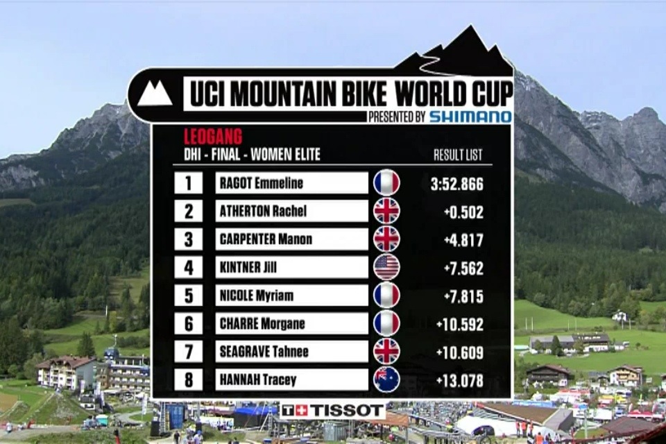Emmeline Ragot wins the day, but Rachael Atherton wins the war. Rachael Atherton is the 2013 UCI Downhill World Cup Series Champion.