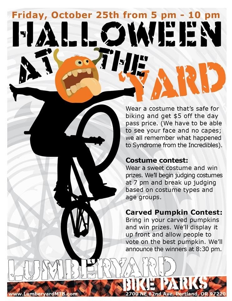 Lumberyard will be hosting a Halloween party. Come dressed up in safe/family friendly costume and receive $5 OFF ADMISSION! Costume contest, carved pumpkin contest and a whole lot of prizes/goodies!!