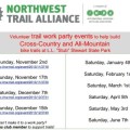 Dates of NWTA hosted 2013/2014 Trail work party events at Stub State Park