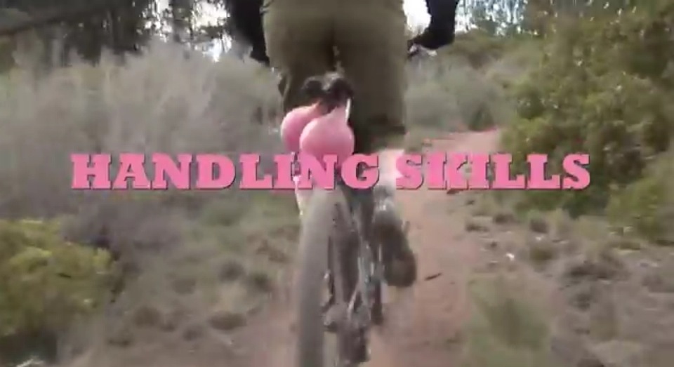 Three ladies got together to film a movie for the Bend Bicycle Film Festival. Things went horribly wrong when the prop got sucked into the rear wheel of our true heroine and she was catapulted down a gap/drop thingy. She always makes this particular jump, but not on the day her BigBalls got stuck and sent her flying, breaking her left arm, dislocating her left wrist and breaking her right thumb… OUCH. I have to say, it was a collective DUMB decision we made about thinking the balls would bounce off the bike and not get caught. DUMB.