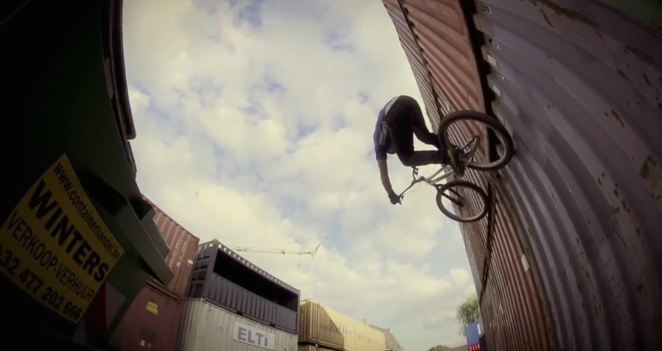 Red Bull athlete and 9-times world champion Kenny Belaey started his personal clothing line of t-shirts. The clip ‘Kenny Belaey Cargo’ shows how Kenny takes his trial bike through the Port Of Antwerp, looking for the cargo that contains the first load of his t-shirts. While searching for the cargo container, Kenny has to overcome different natural obstacles, taking his trial bike past different docks, stairways, containers, cranes and forklifts.