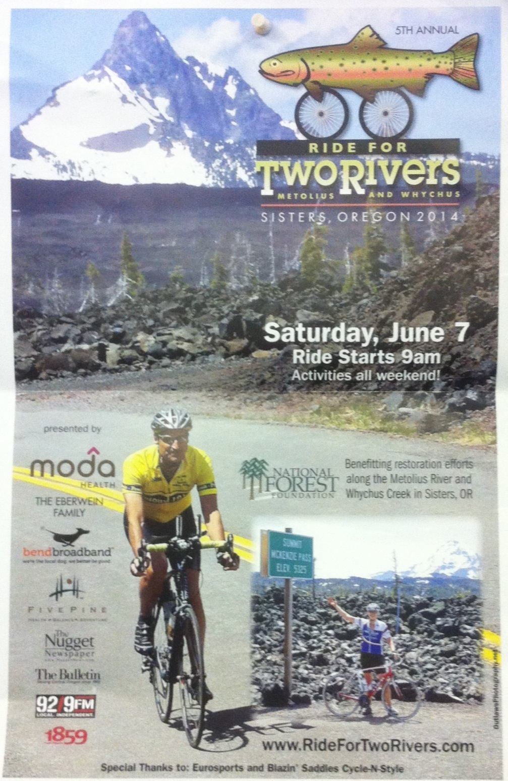 Join us for the 4th Annual Ride for Two Rivers! This benefit ride for the National Forest Foundation is scheduled for Saturday, June 7th and will take participants up the scenic McKenzie Pass to Belknap Hot Springs and back.