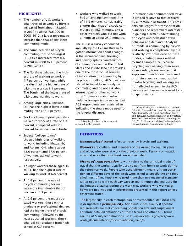 Bicycling and Walking to Work in the United States: 2008 – 2012