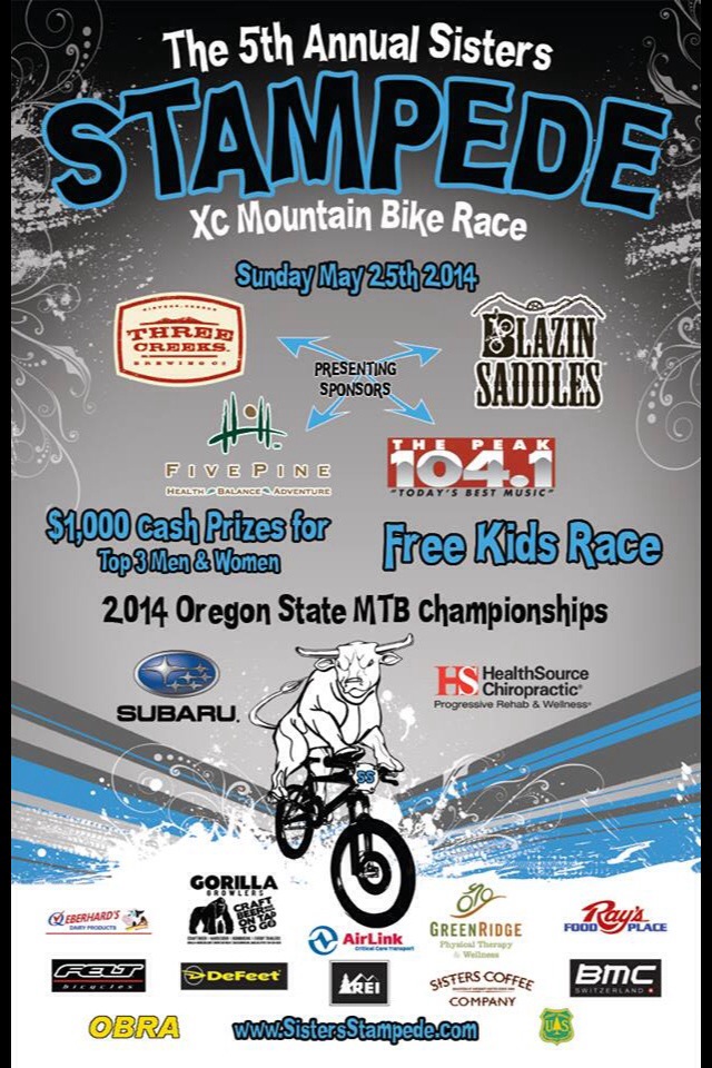Race your bike on the beautiful Peterson Ridge Trail in Sisters, Oregon. The Sisters Stampede, now in its fifth year, became the largest cross country mountain bike race in Oregon in 2011, and continues every Memorial day weekend. There is something for everyone with 23 different race categories, and a party at the finish line!