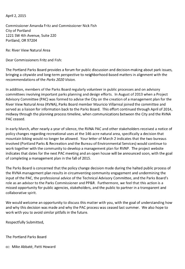 Portland Park Board wants answers about Riverview decision By White Lotus Sports on April 4, 2015 • ( 0 ) Read more about it at BikePortland.org. Share this: Share on X (Opens in new window) X Share on Facebook (Opens in new window) Facebook Email a link to a friend (Opens in new window) Email More Print (Opens in new window) Print Like Loading...‹ Letter writing campaign to City of Portland2015 UCI BMX Supercross World Cup – Manchester England ›Categories: Advocacy, LifestyleTags: Advocacy, bicycle, bike, mountain bike, mountainbike, Oregon, Portland, riverview natural area Related Articles FOR ALL RIDERS | Building Trails & Community | New Documentary Coming Soon Yoga For Cyclists – Yoga With Adriene FXD Workwear: Behind every new trail… Opinion: Mountain Biking, Flow State, and the Psychology of Healing
