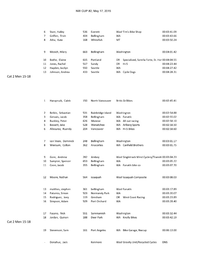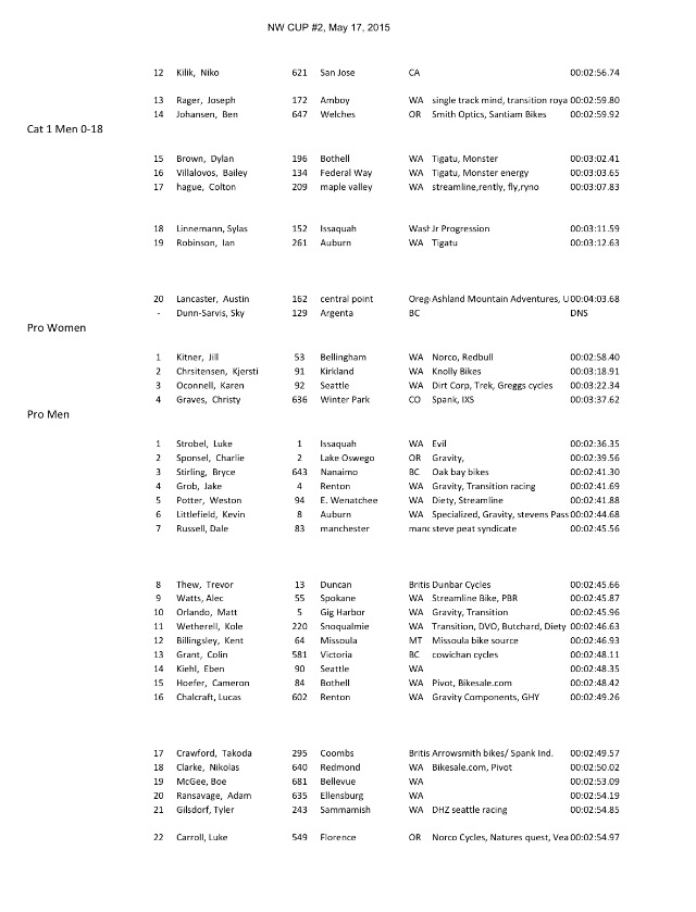 RESULTS: Northwest Cup DH MTB Series Round 2 By White Lotus Sports on May 18, 2015 • ( 0 ) Dry Hill / Port Angeles, Washington May 15-17, 2015 http://www.NWCup.com Share this: Click to share on X (Opens in new window) X Click to share on Facebook (Opens in new window) Facebook Click to email a link to a friend (Opens in new window) Email More Click to print (Opens in new window) Print Like Loading...‹ Fairweather – James DoerflingRed Bull TV Schedule – UCI MTB World Cup 2015: Nove Mesto, Czech Republic ›Categories: Mountain Bike RacingTags: bicycle, bike, mountain bike, mountainbike, Northwest Cup, NW Cup, port angeles, Washington Related Articles 2026 Cascadia Dirt Cup Schedule North American Enduro Cup 2026 2026 Sturdy Dirty Enduro 2026 Northwest Cup Downhill MTB Schedule