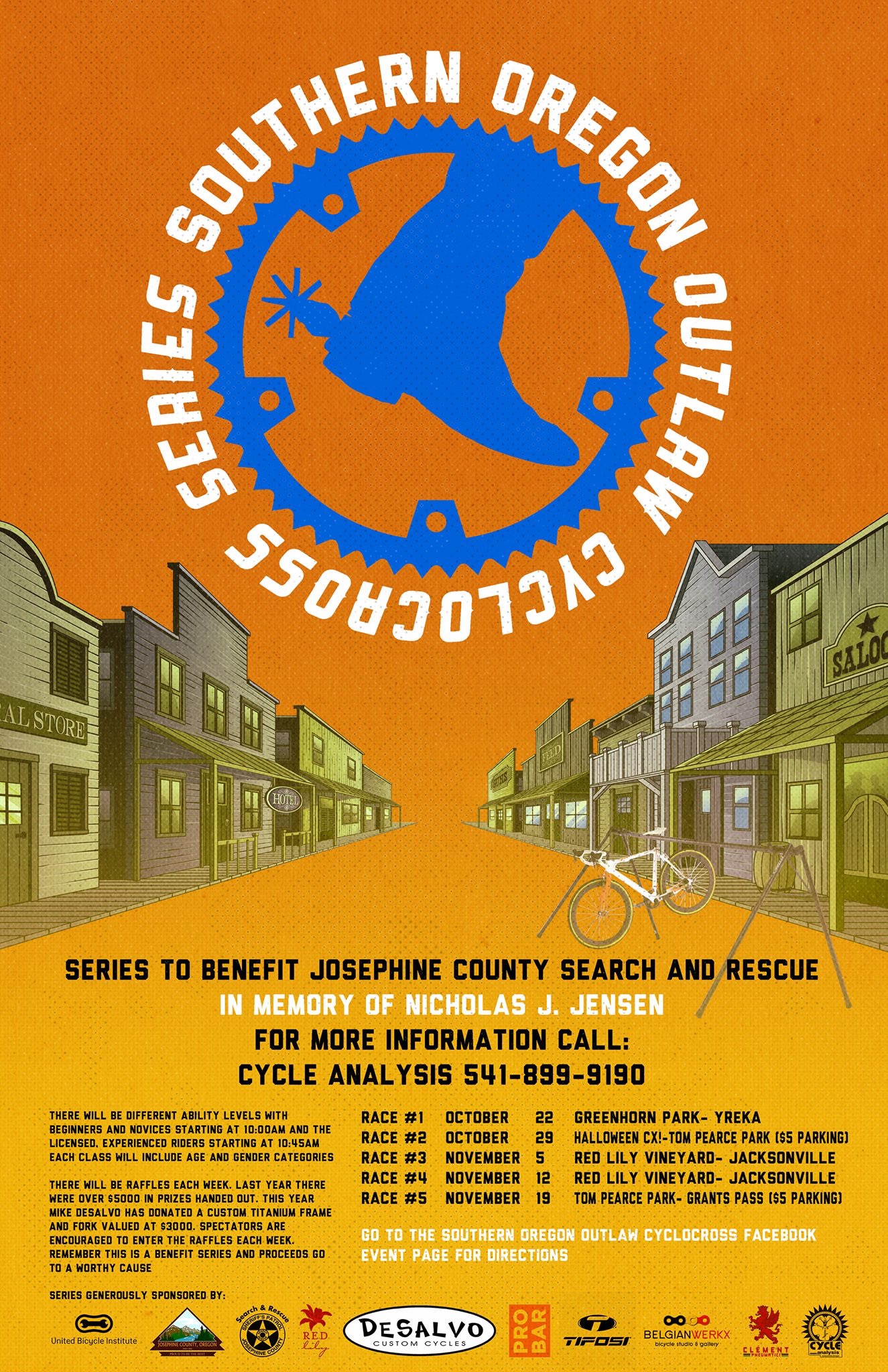 Southern Oregon Outlaw Cyclocross Series By White Lotus Sports on October 17, 2016 • ( 0 ) Series to benefit Josephine County Search and Rescue Share this: Click to share on X (Opens in new window) X Click to share on Facebook (Opens in new window) Facebook Click to email a link to a friend (Opens in new window) Email More Click to print (Opens in new window) Print Like Loading...‹ VIDEO: Cross Crusade 2016 – Alpenrose #1 & #2Timberline Mountain Bike Trails and Skills Park ACCESS ALERT!! ›Categories: Other RacingTags: bicycle, bike, Cyclocross, OBRA, Oregon Related Articles Cascadia Super Gravel 2026 Yoga For Cyclists – Yoga With Adriene USA Cycling Announces 2024 National Championship Schedule Portland Trophy Cup 2023