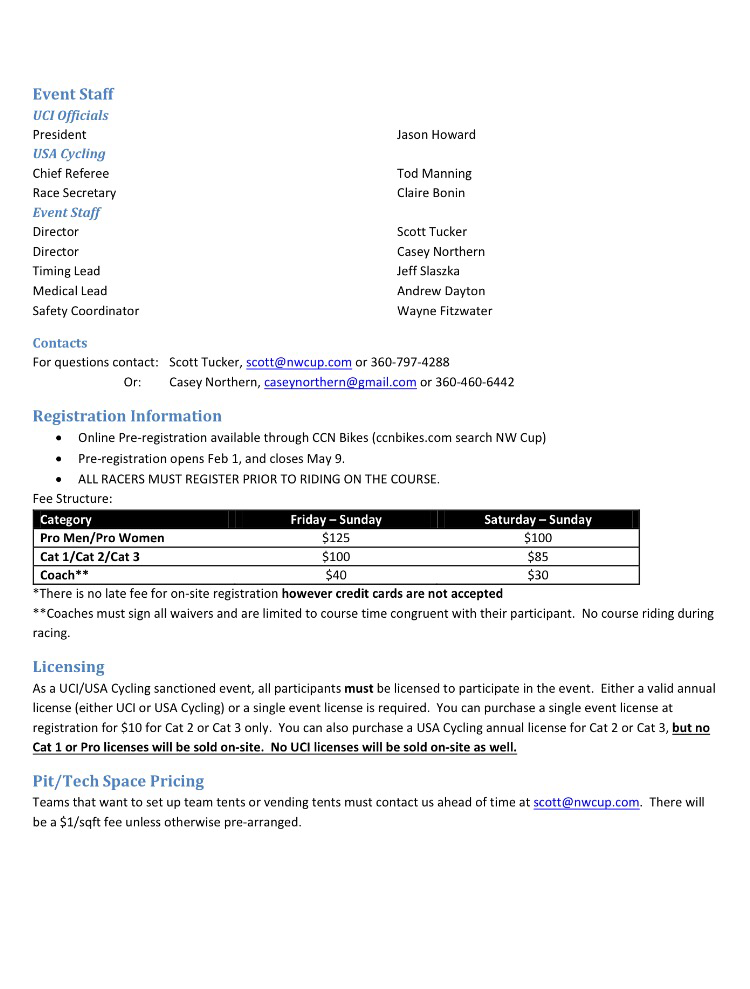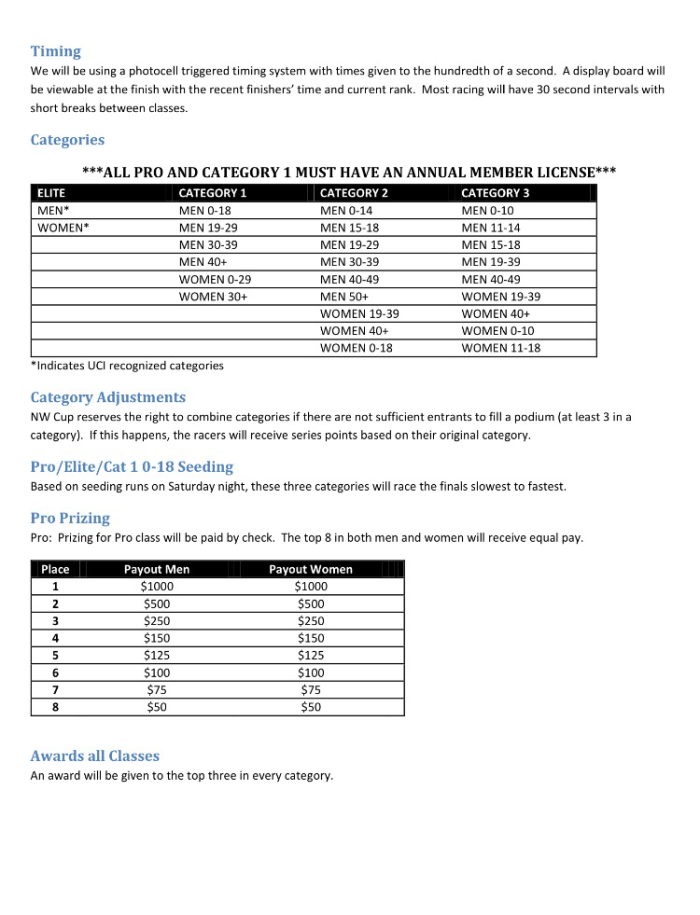 All info from http://www.NWCup.com