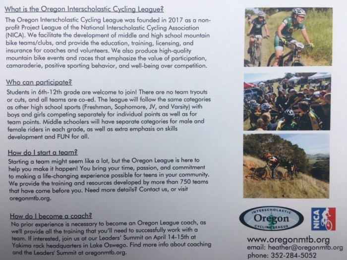 We provide quality mountain bike programs for student-athletes all around the state of Oregon, regardless of riders’ abilities, experiences, or backgrounds. Our first season will launch in Fall 2018!