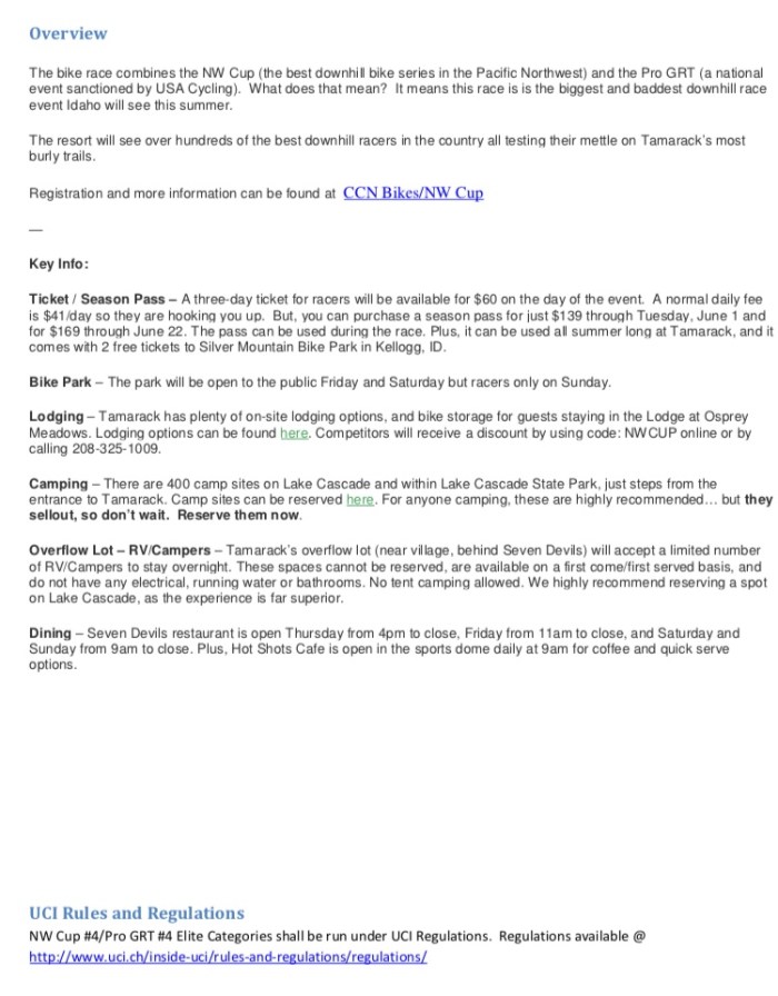 The bike race combines the NW Cup (the best downhill bike series in the Pacific Northwest) and the Pro GRT (a national event sanctioned by USA Cycling). What does that mean? It means this race is is the biggest and baddest downhill race event Idaho will see this summer.