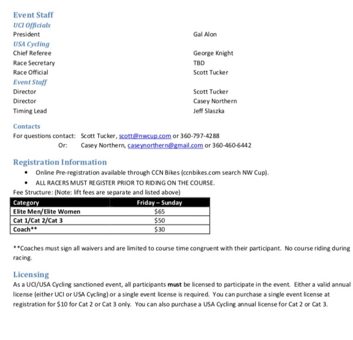 2026 Northwest Cup Downhill MTB Schedule