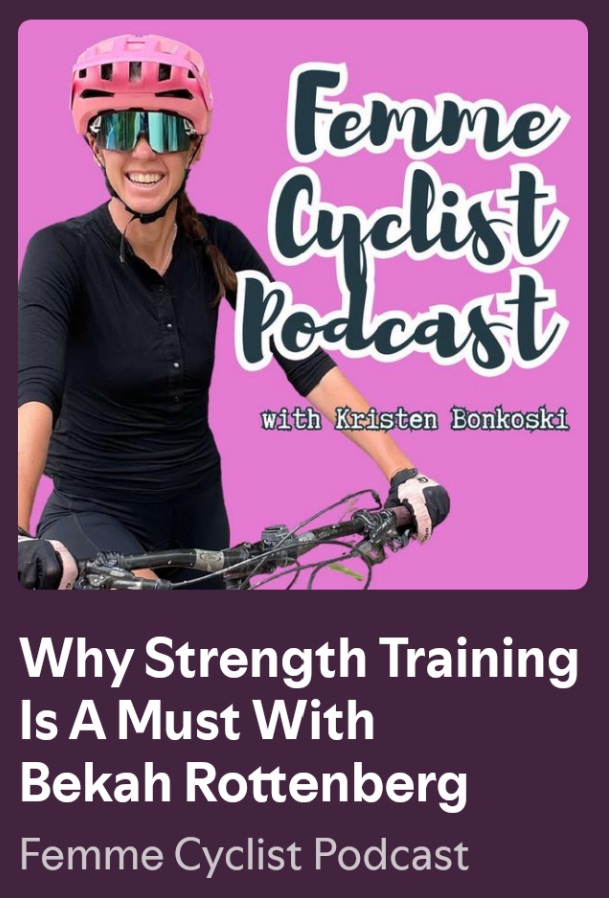 In this podcast interview, I chat with Bekah Rottenberg about why strength training needs to be a non-negotiable part of our routine. Bekah, who is a mountain bike skills coach and strength training coach, likes to say “you can’t be strong on the bike until you get strong off the bike.”