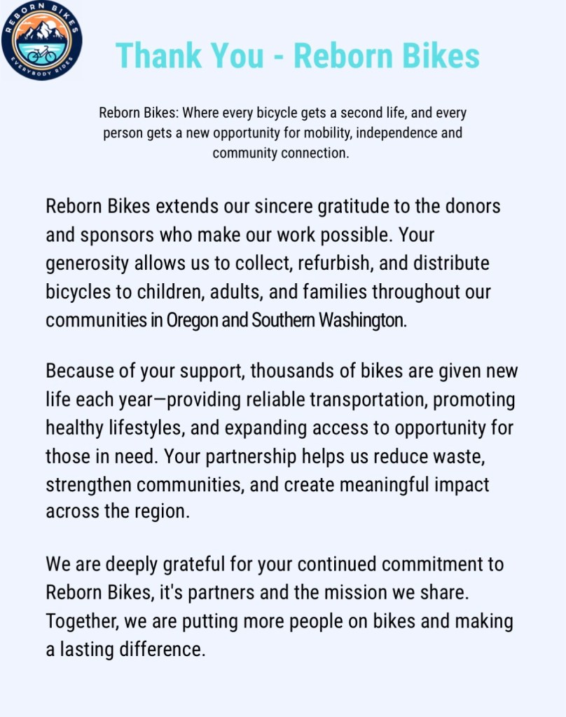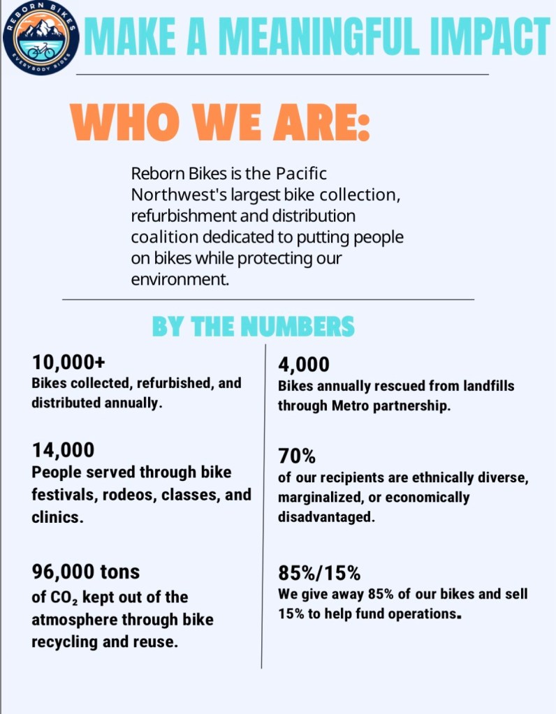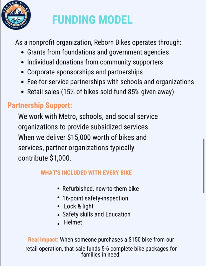 Reborn Bikes: Where every bicycle gets a second life, and every person gets a new opportunity for mobility, independence and community connection.